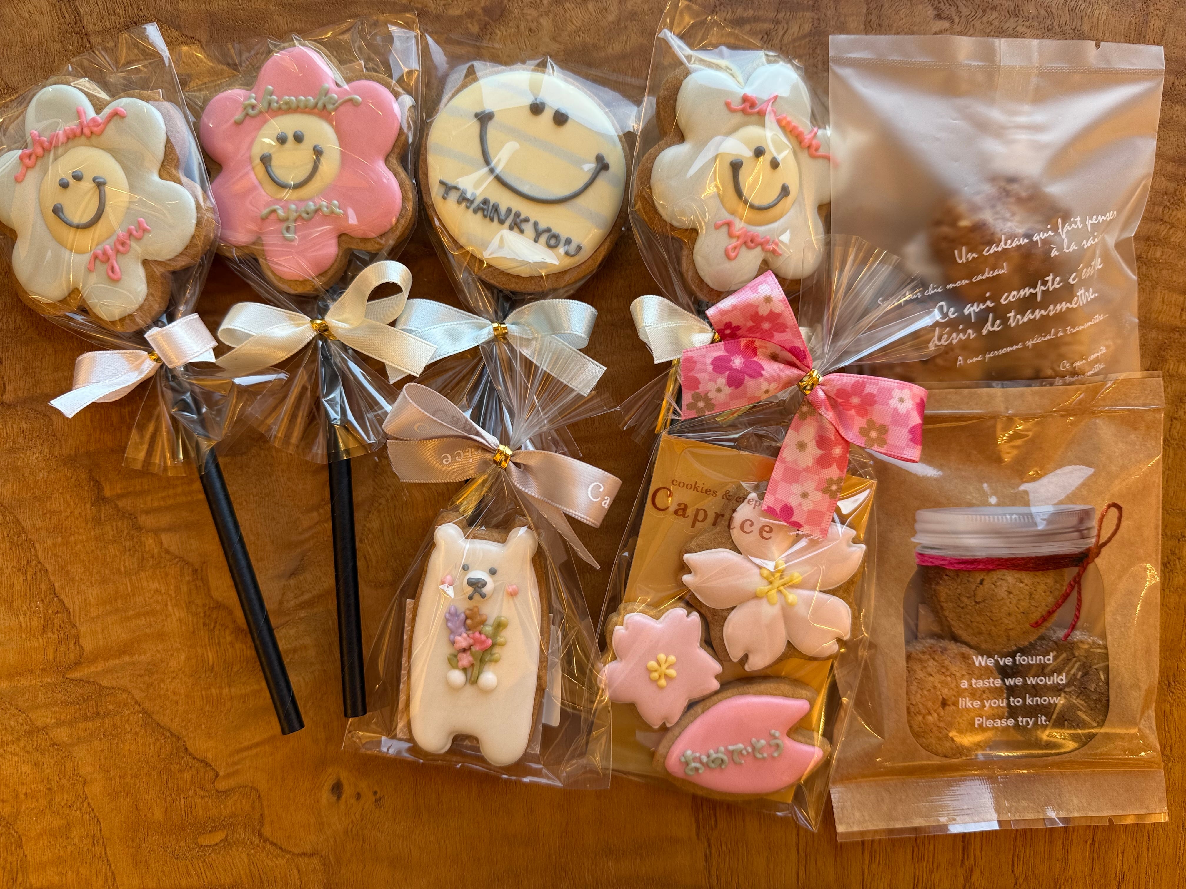 thank youやおめでとうのアイシングが入った詰め合わせです。